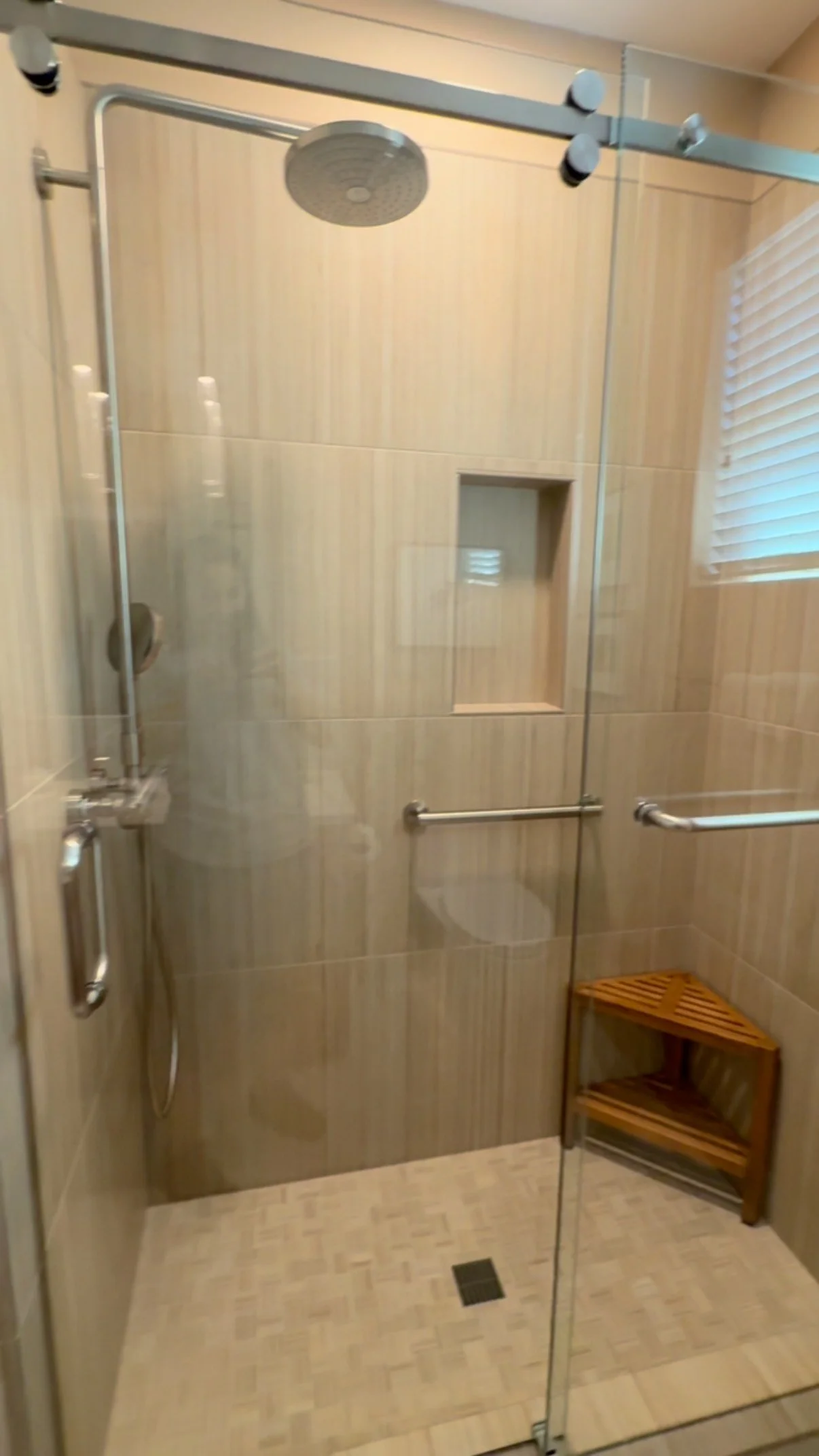 - Custom tile showers with benches, niches, and linear drains